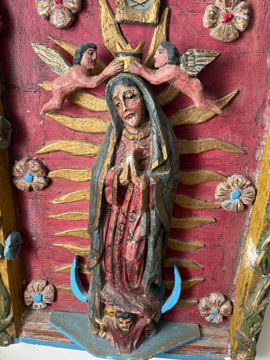 Massive Vintage Plaster Folk Art Our Lady of Guadalupe Santos Shrine