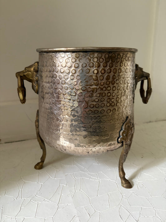Rare Hammered Brass Stag Champagne Bucket or Planter (FREE SHIPPING)