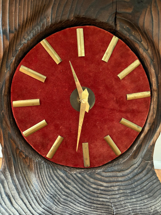 1970s Carved Wood Folk Art Clock (FREE SHIPPING)