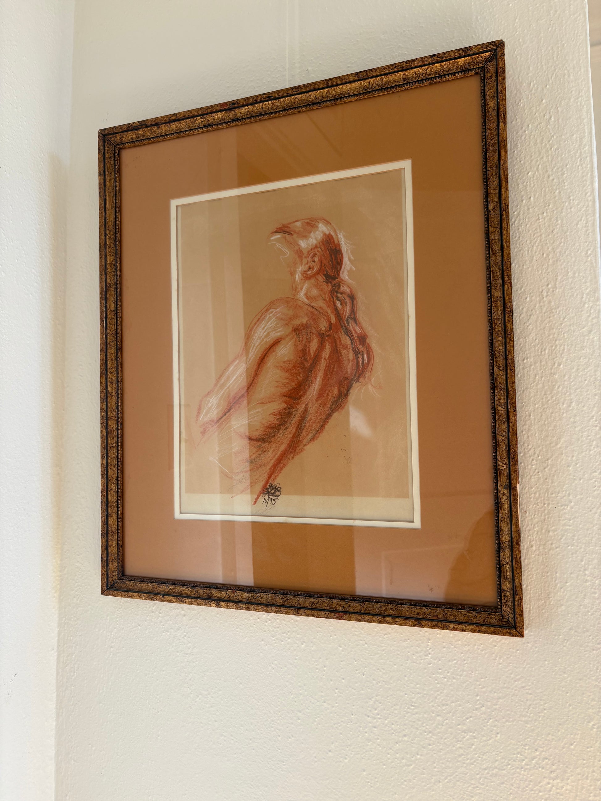 Original Pastel Figure Drawing Double Matted in Gold Frame (FREE SHIPPING)