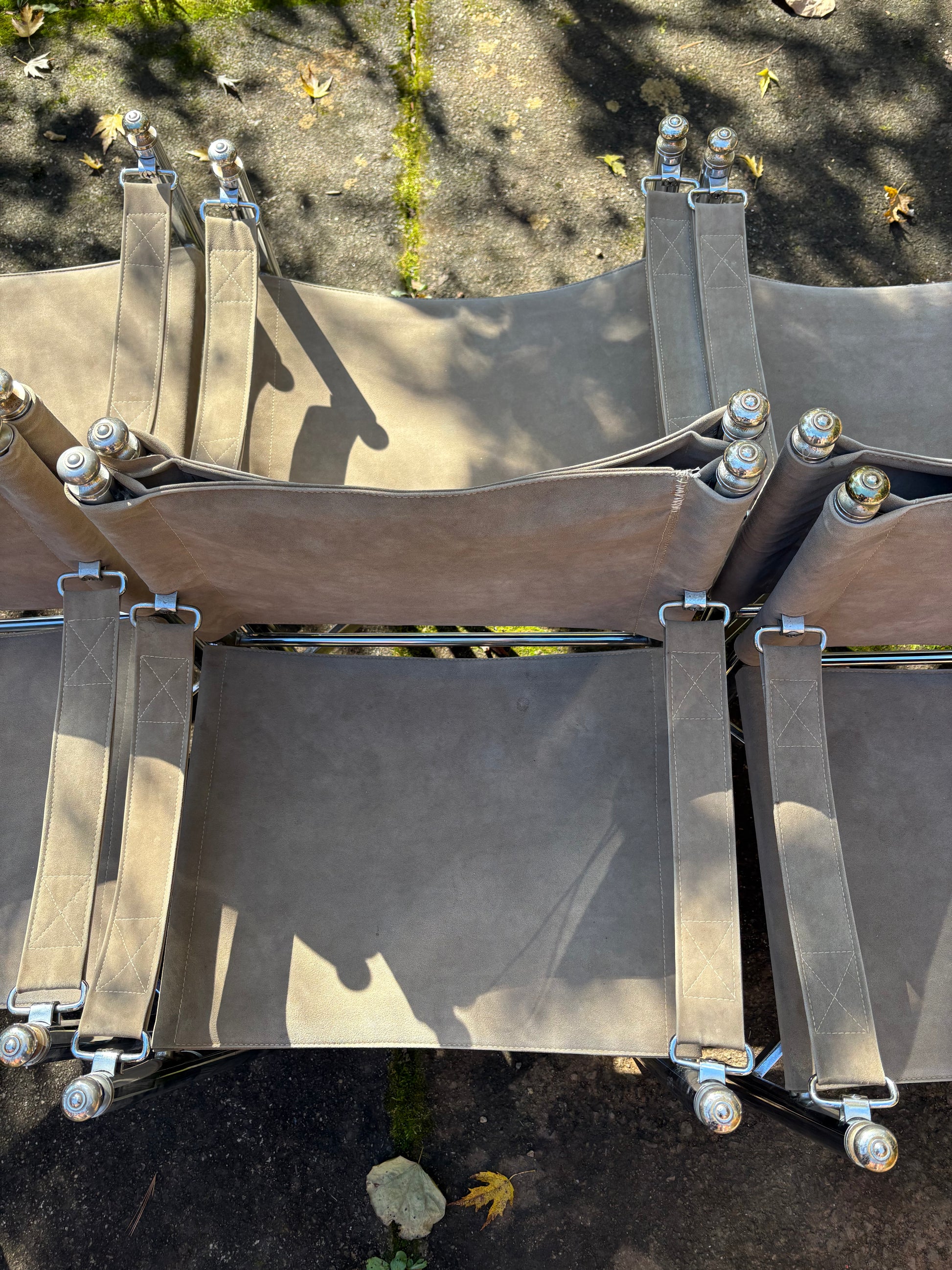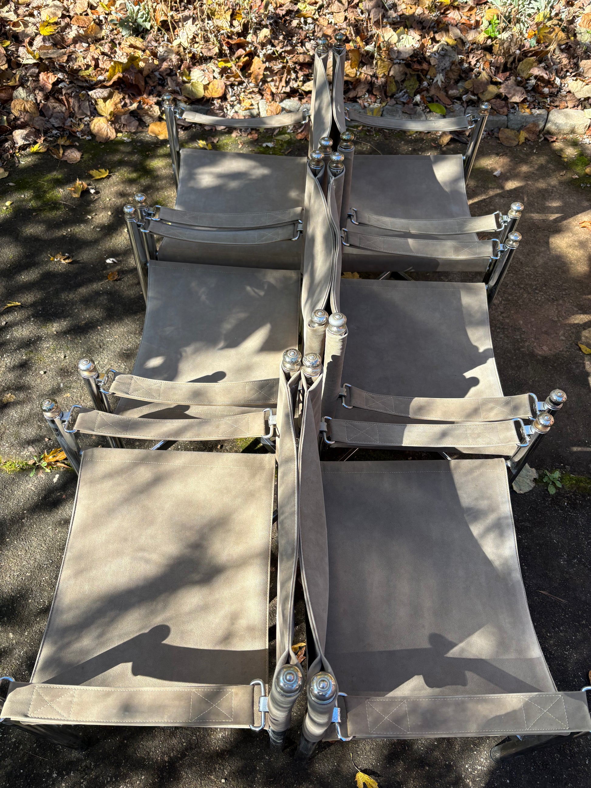 Set of 6 1960s Chrome & Suede Pace Furniture Collection Campaign Chairs
