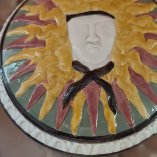 Ceramic Container with Sun Person and Geometric Design (FREE SHIPPING)