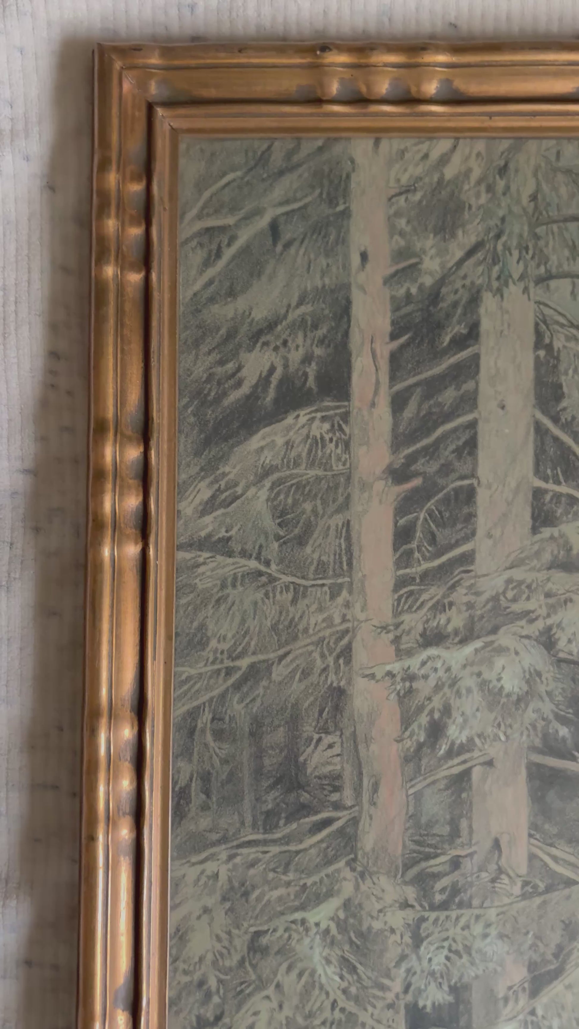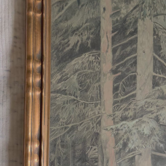 1925 Original Pastel and Graphite Drawing of a Forest Scene in Gilt Frame (FREE SHIPPING)